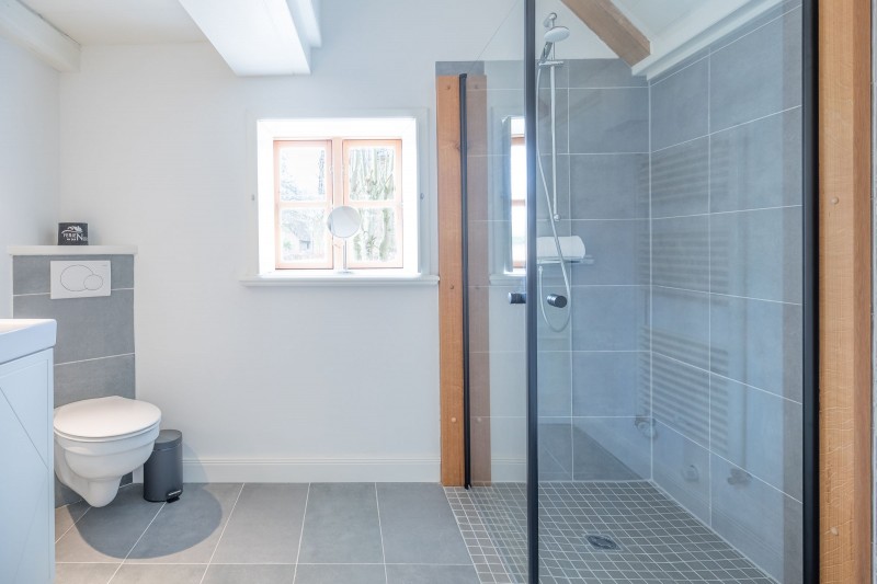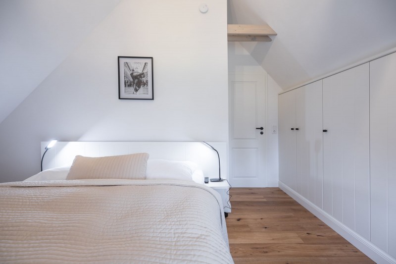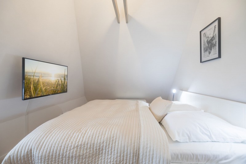 Das 120 qm große Ferienhaus verfügt über drei Schlafzimmer mit jeweils einem komfortablen Doppelbett. Ein Schlafzimmer befindet sich im Erdgeschoss, die anderen beiden im Obergeschoss. Bei Anreise sind Ihre Betten bezogen, der Urlaub kann beginnen. Im Obergeschoss befindet sich außerdem ein modernes Duschbad.