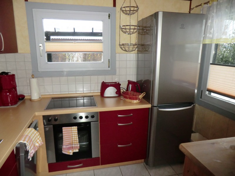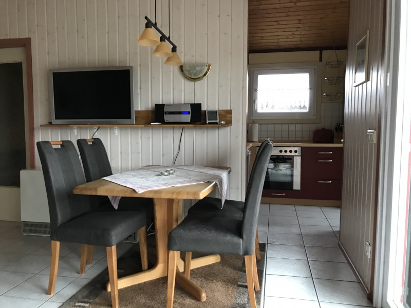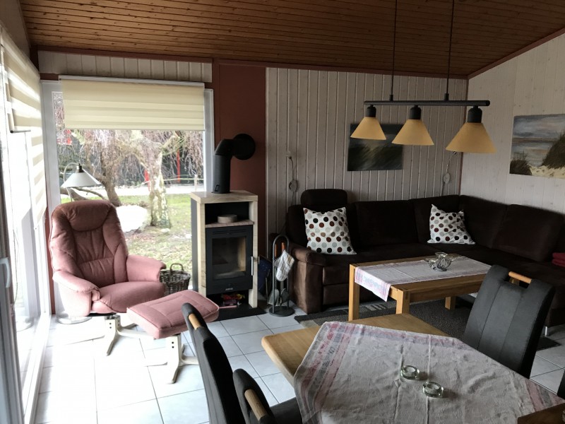 Sie wohnen auf 50 m² in unserem komplett eingerichteten Ferienhaus für 4 Personen. Im Wohnzimmer lädt eine bequeme Sitzgarnitur zum Verweilen ein. Im Winter verwöhnt Sie die Wärme eines Kaminofens. (Holz ist im Preis nicht enthalten.) Das Haus verfügt über 2 Schlafzimmer (eins mit Doppelbett 1,60 m x 2 m, und ein weiteres mit zwei Einzelbetten 1,00 m x 1,90 m). Wohn-Esszimmer, Küche mit Geschirrspüler, Kühl-Gefrierkombination, Backofen mit Ceranfeld, Mikrowelle und Waschmaschine sowie ein Bad mit Dusche und WC. Sonnige möblierte Terrasse mit Strandkorb.