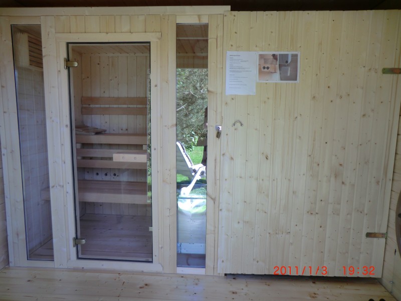 Gartenhaus, Außendusche und Sauna bieten zusätzlichen Komfort.