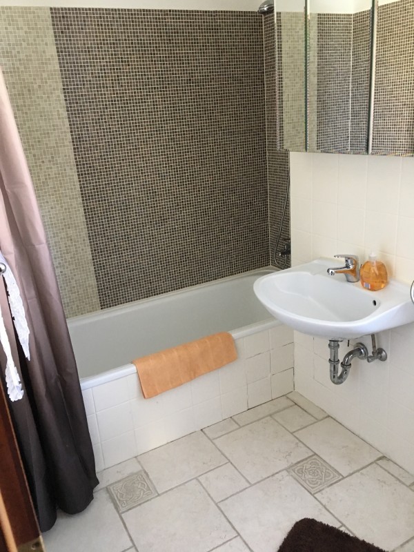 PKW-Stellplatz, kl. Gartenanlage, Abstellmöglichkeiten, Fahrradkeller, Waschmaschine (g. Gebühr) im Haus, sep. Trockenraum. Kinderspielplatz in der Nähe.