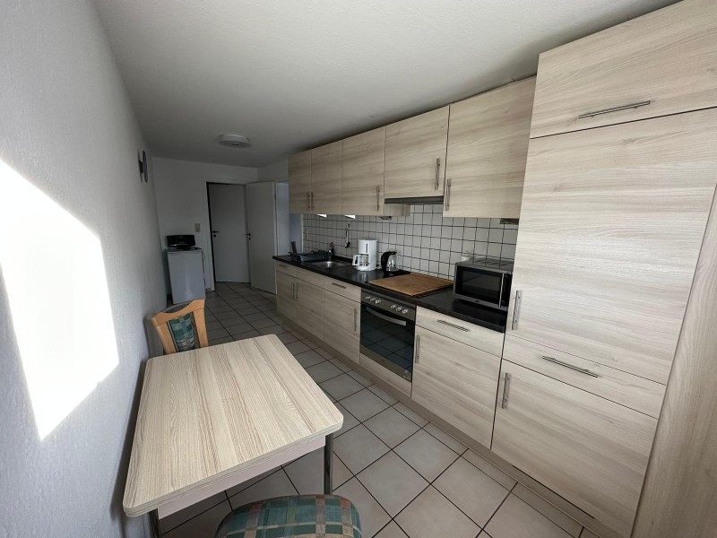 Die gemütlich eingerichtete Ferienwohnung besteht aus einem Wohnraum mit Schlafsofa, 2 Schlafräume , 1 mit Doppelbett und 1 Schlafzimmer mit einem Bett 140×200 cm. Einbauküche mit Sitzgelegenheit.