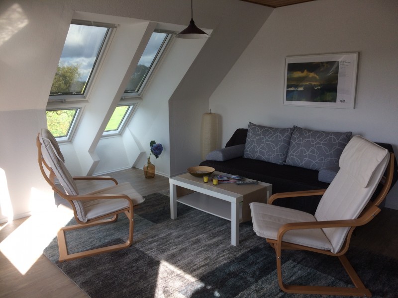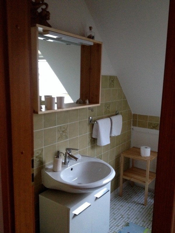 Die Ausstattung der Ferienwohnung ist ökologisch orientiert. Strom von Greenpeace Energy. In der gesamten Wohnung ist Laminat verlegt, das Bad ist gefliest.