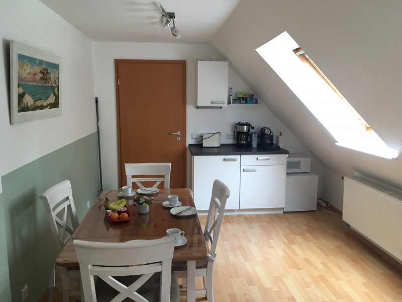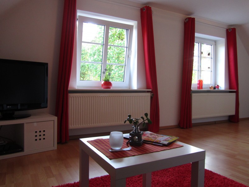 Die Ferienwohnung liegt in der ersten Etage eines Einfamilienhauses. Zwei Zimmer mit je zwei Doppelbetten (1 Doppelbett kann umfunktioniert werden zu 2 Einzelbetten) bieten Platz für bis zu 4 Personen. Die Zimmer sind gemütlich und modern eingerichtet. Neben den Schlafzimmern steht ein Wohnzimmer, eine Küche sowie ein Badezimmer zur Verfügung. Die Küche ist komplett ausgestattet und eignet sich somit perfekt, um ein ausgiebiges Frühstück zu genießen oder auch nach Belieben Abends zu kochen.